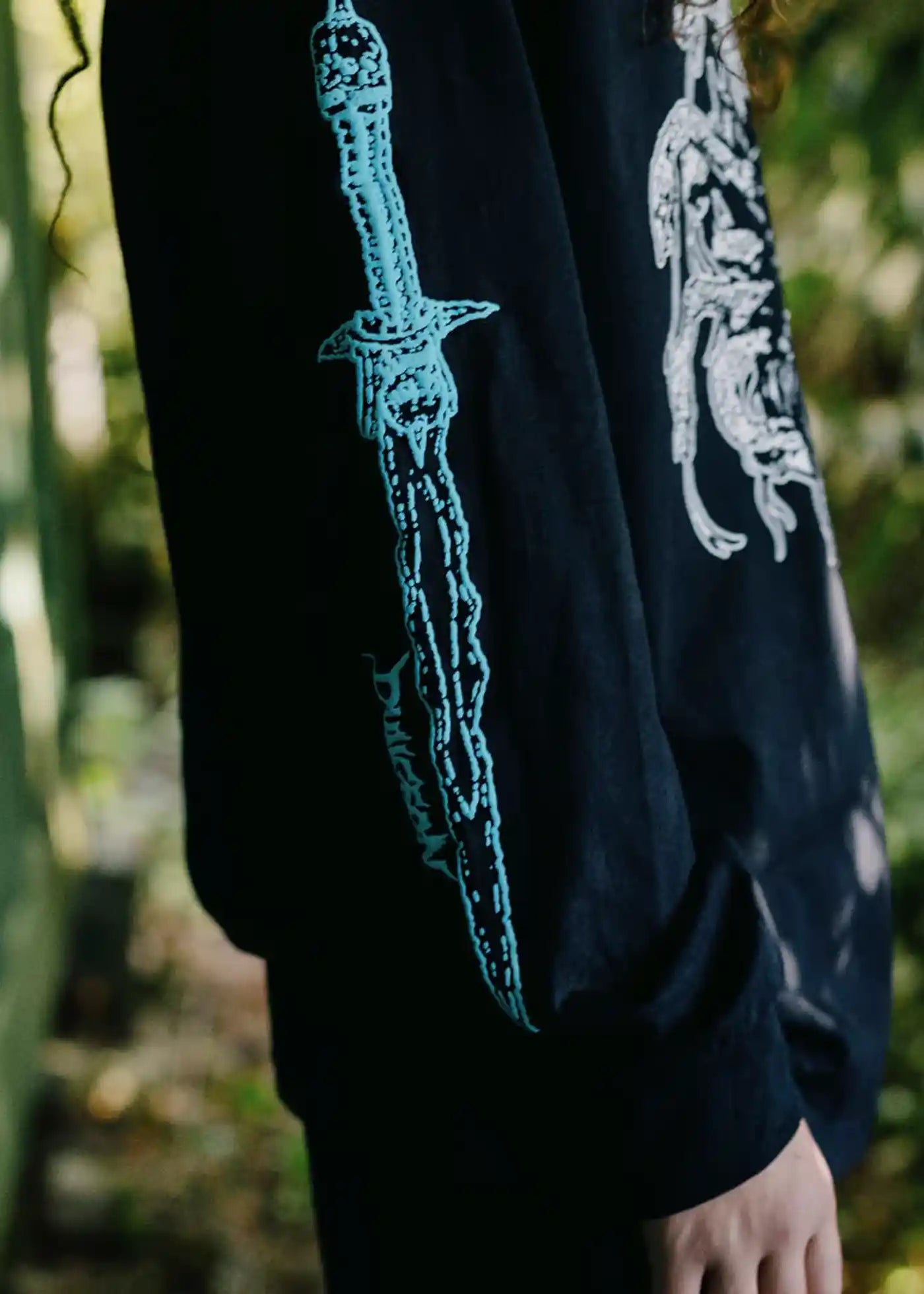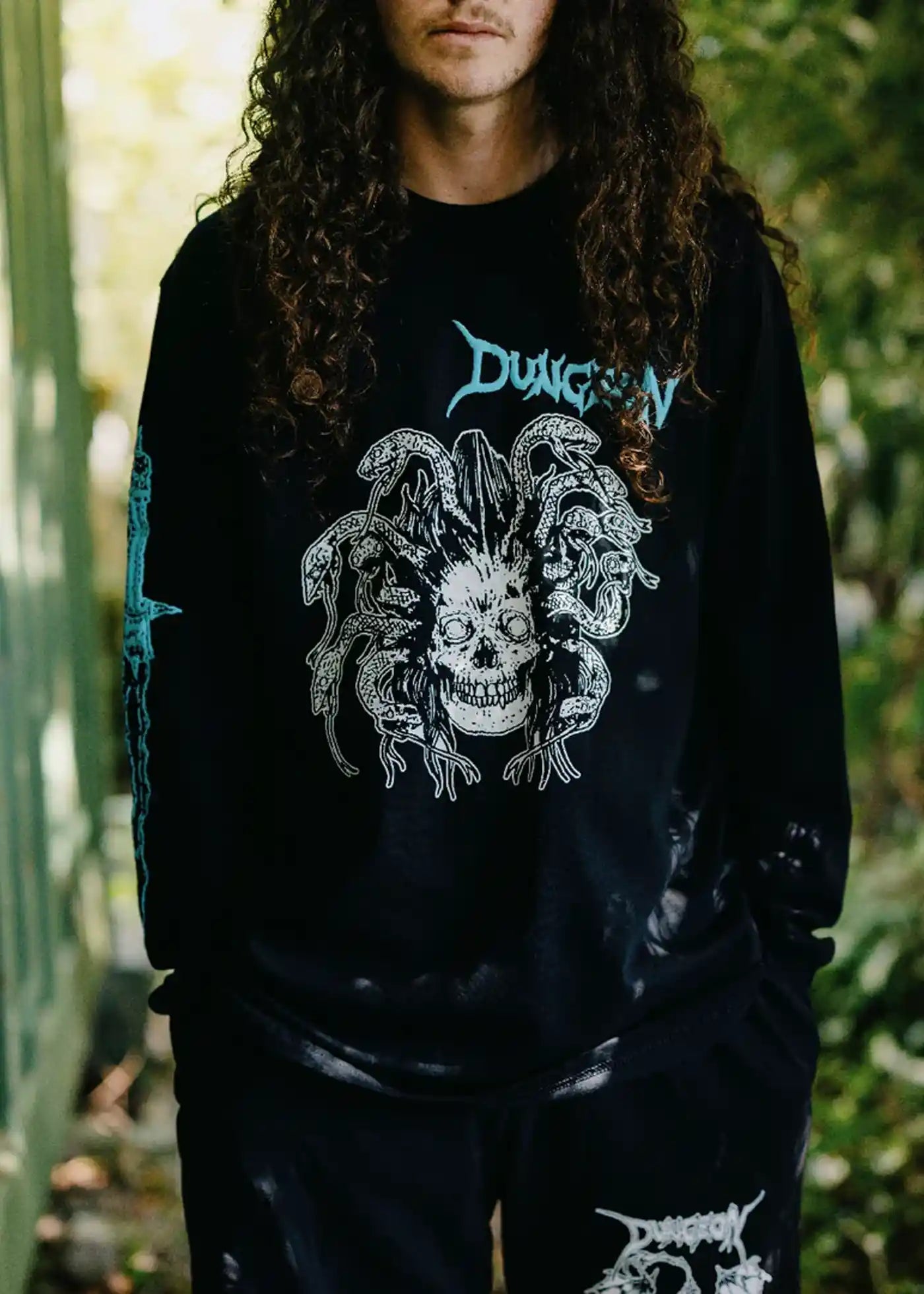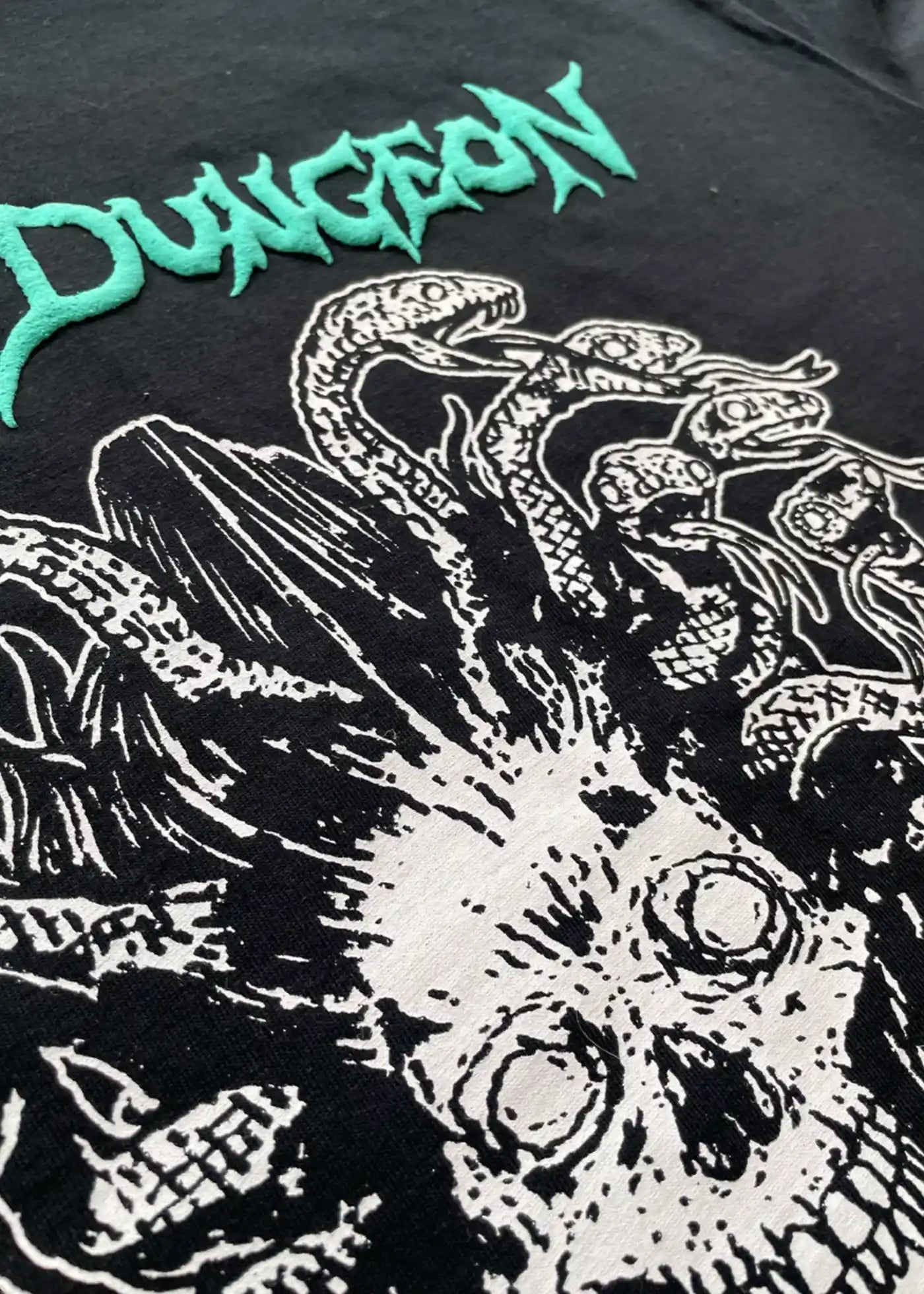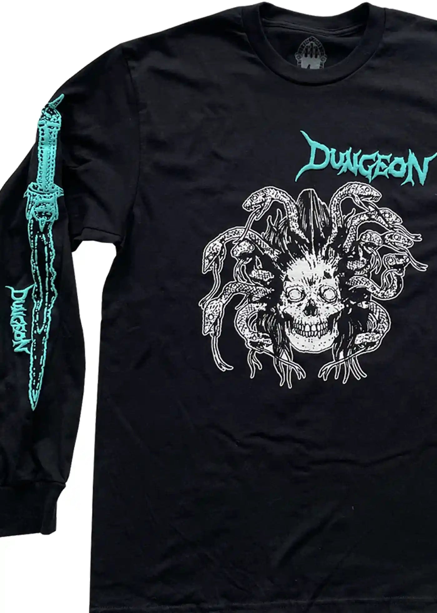Medusa Print am vorne, Dungeon Print am rechten Ärmel.