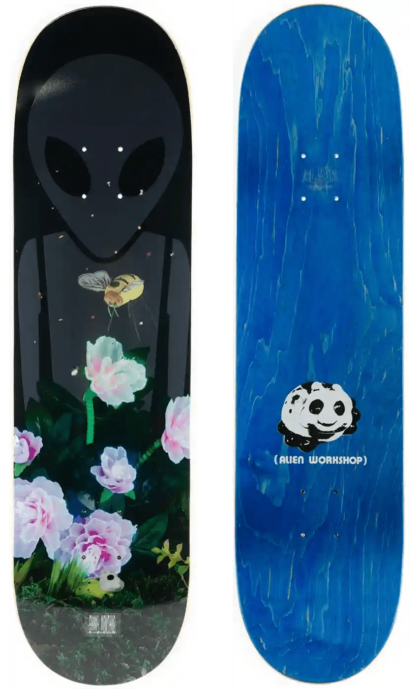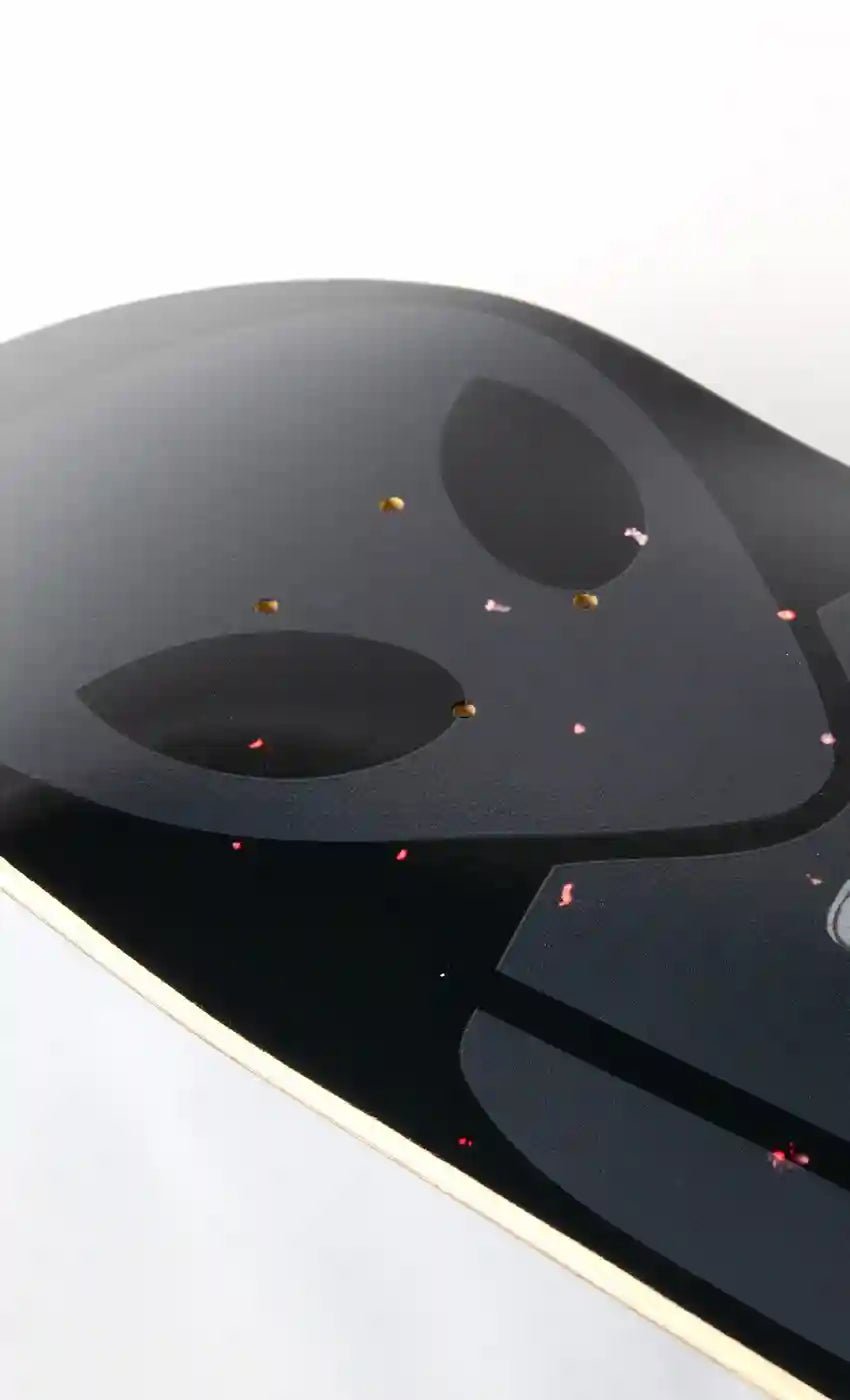 Alien skateboard decks have a slightly steeper concave, nose and tail kick and full shapes with a wider nose and tail for more control.