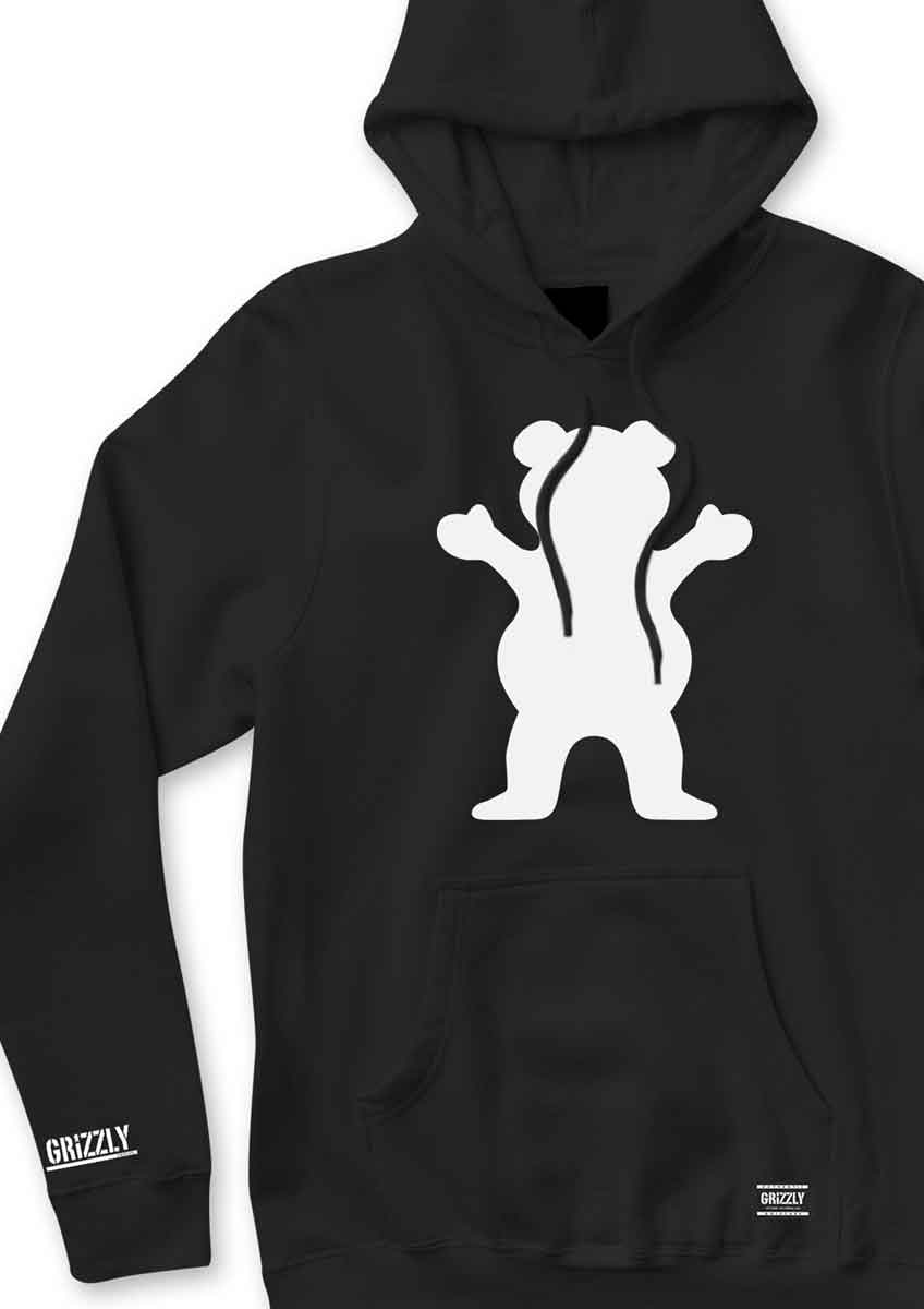 Grizzly OG Bear Hooded Sweatshirt Black White