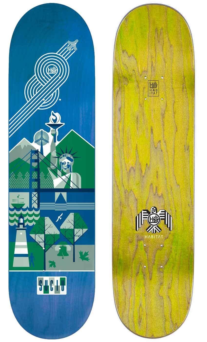 Habitat Skateboard Decks have a slightly steeper concave, or nose and tail kick and full shapes with wider nose and tail for more control