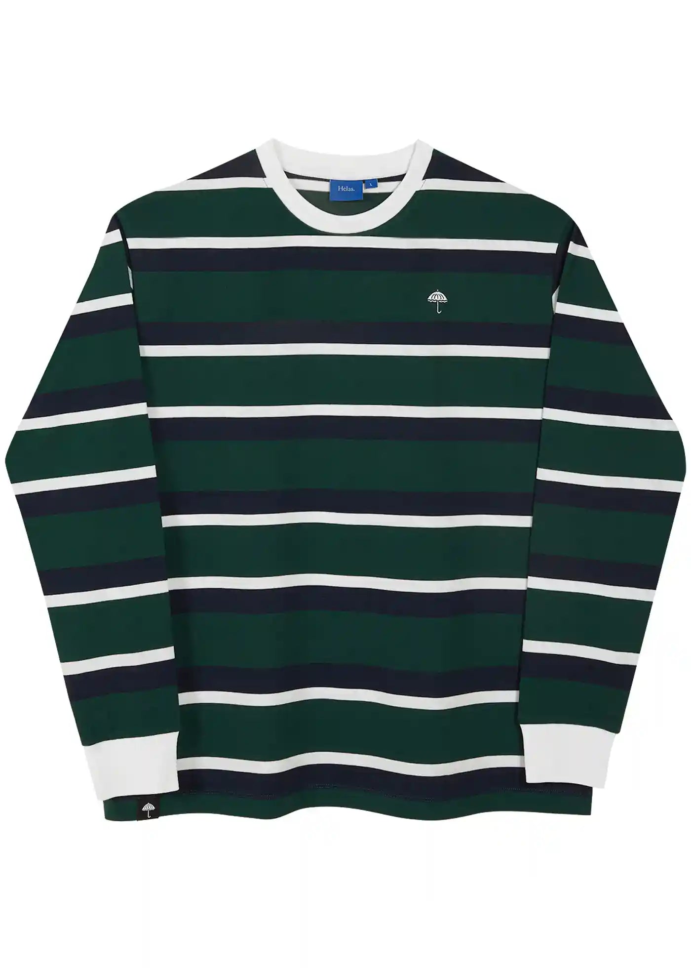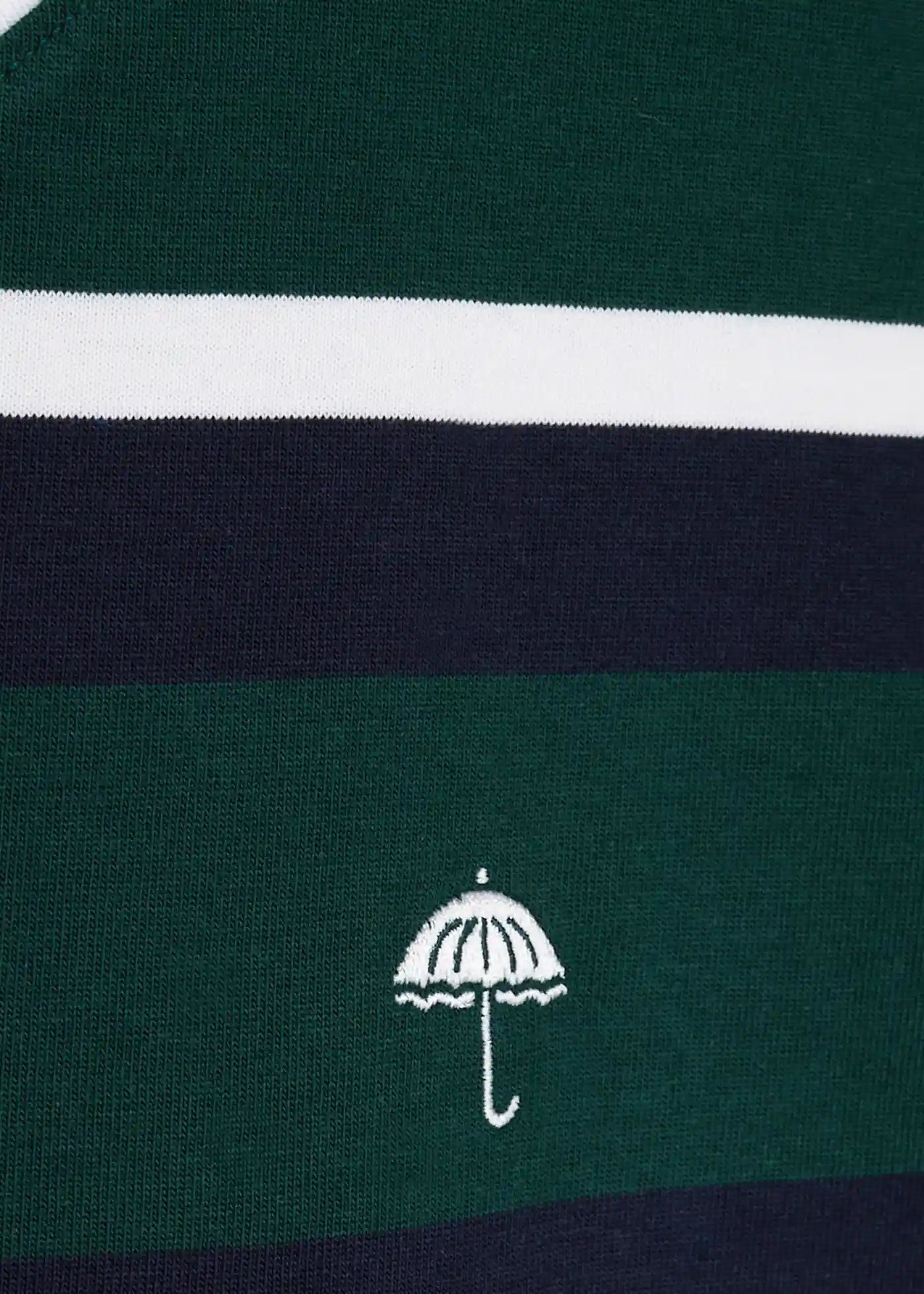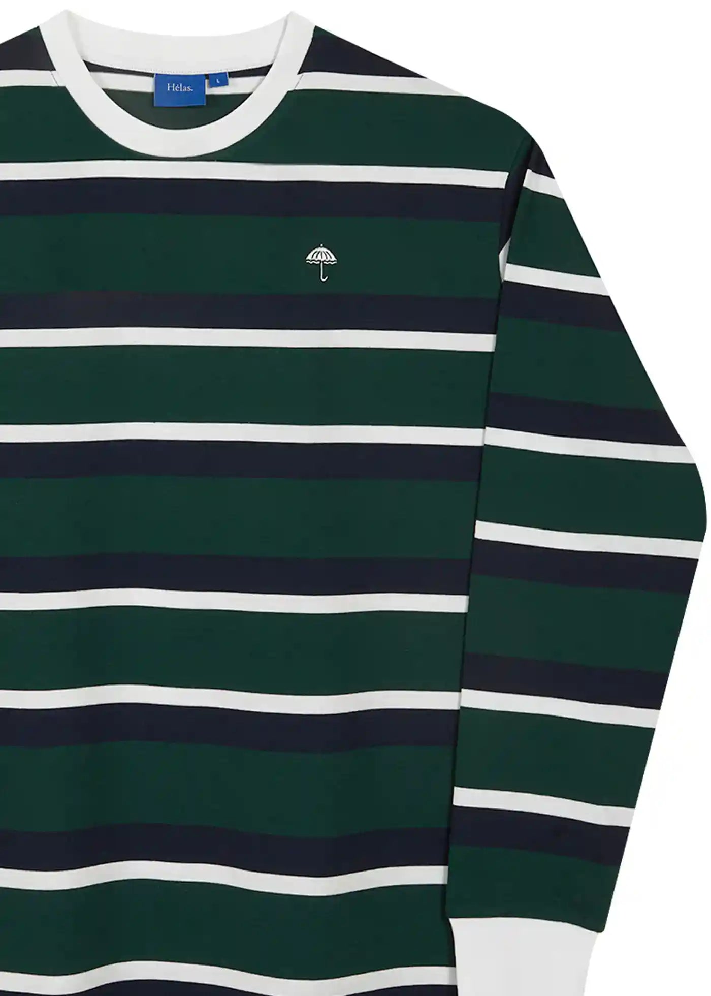 Héla's umbrella logo embroidery on the left chest.
