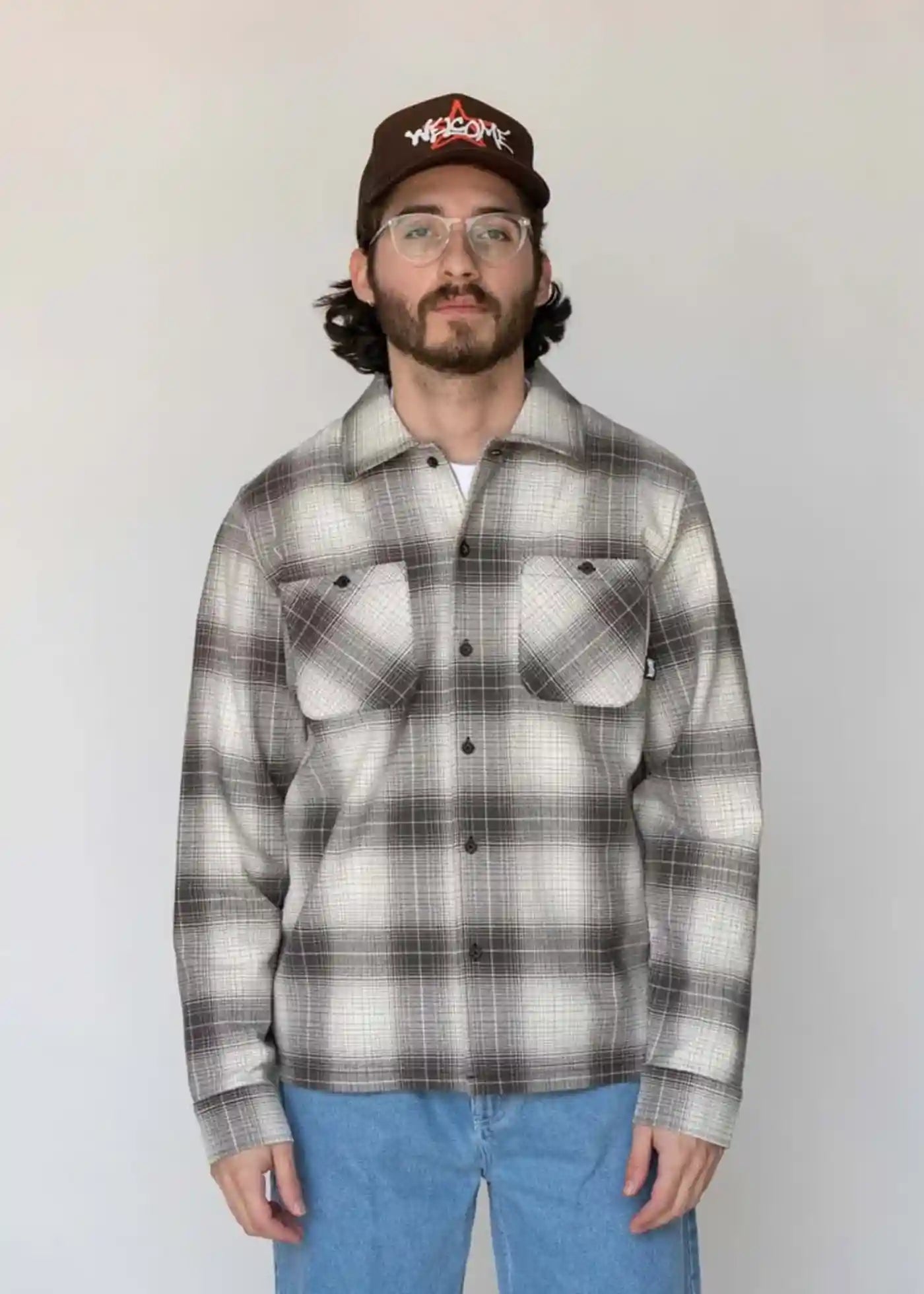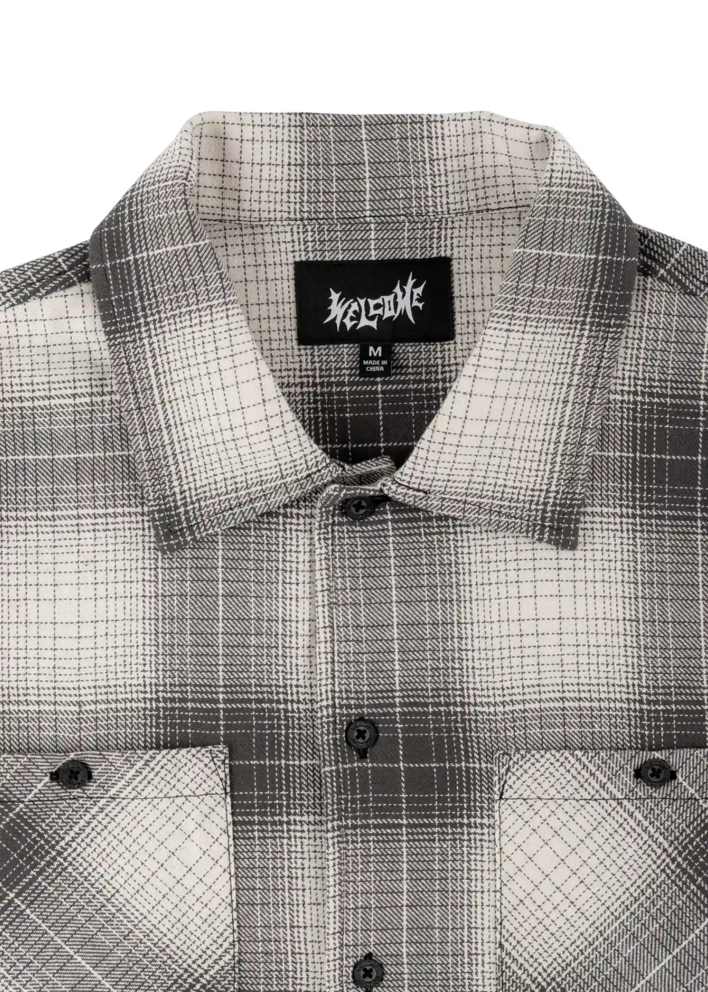 Welcome logo label on the left breast pocket.