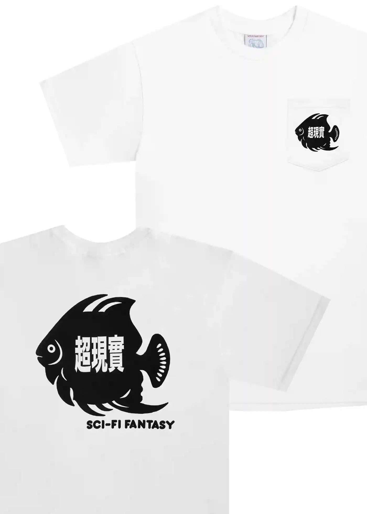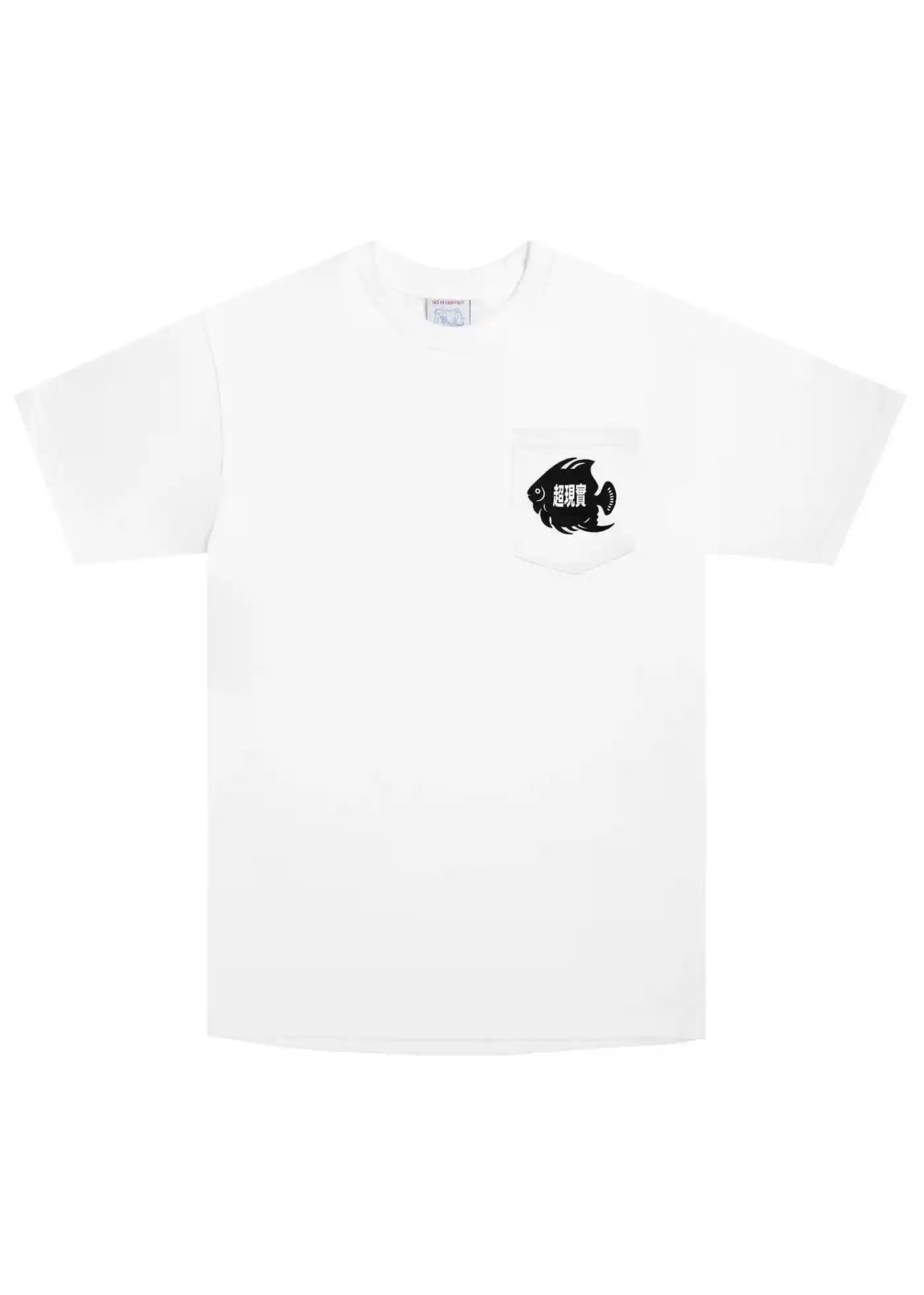 Le Fish est un t-shirt blanc à manches courtes avec une poche poitrine de Sci Fi Fantasy Skateboards.