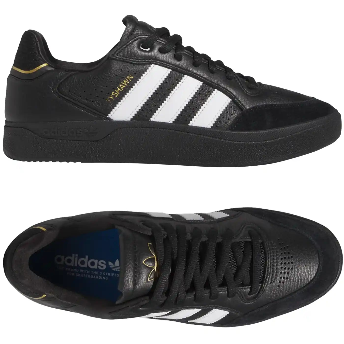 Chaussures de skateboard basses Adidas Tyshawn, noir, blanc et or