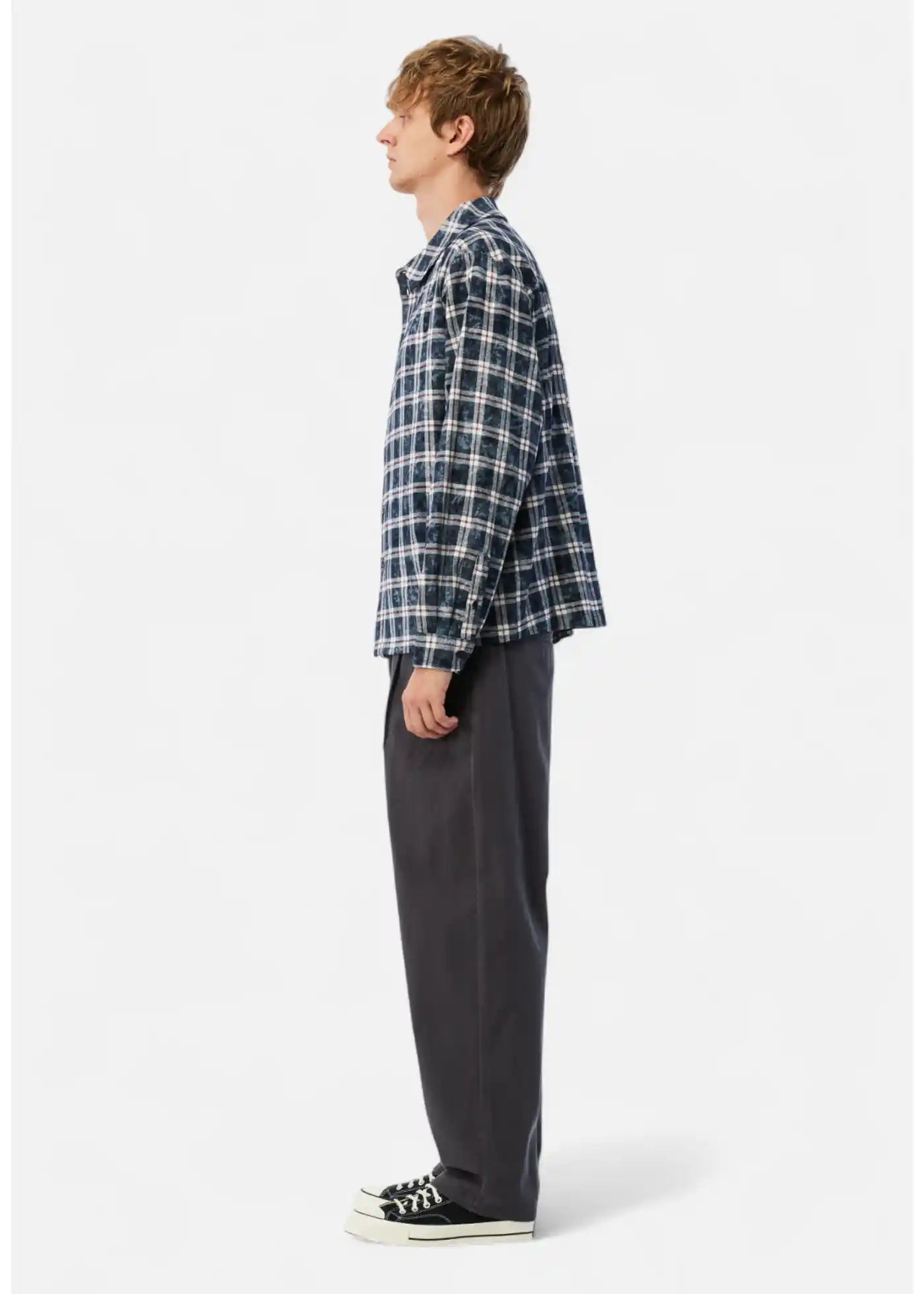 Chemise en flanelle à carreaux Dime bleu marine délavé
