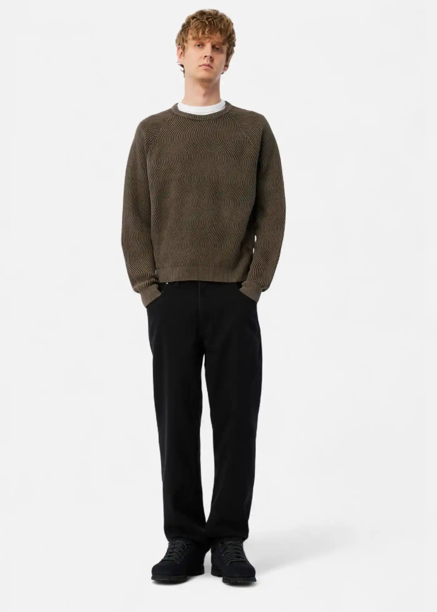 Le modèle Wave est un pull en maille à col rond de la marque Dime.