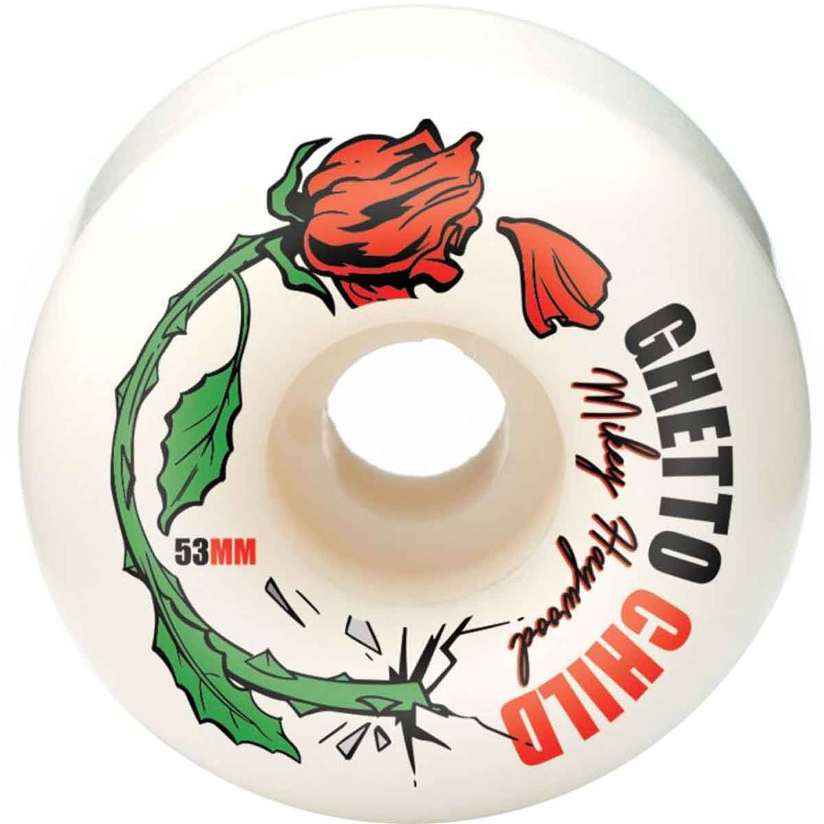 Les Concrete Rose sont des roues de skateboard Mikey Haywood Pro de Ghetto Child Wheels