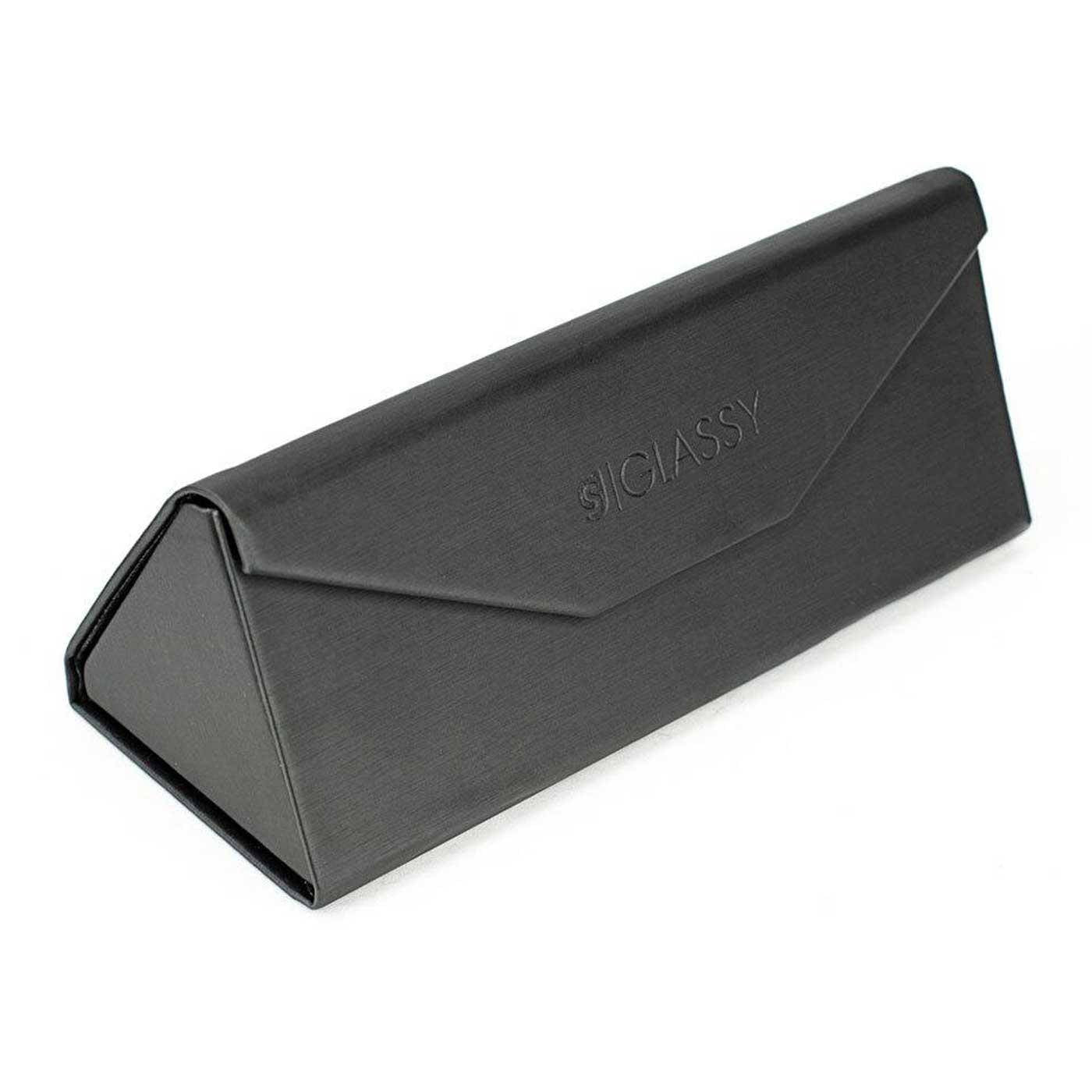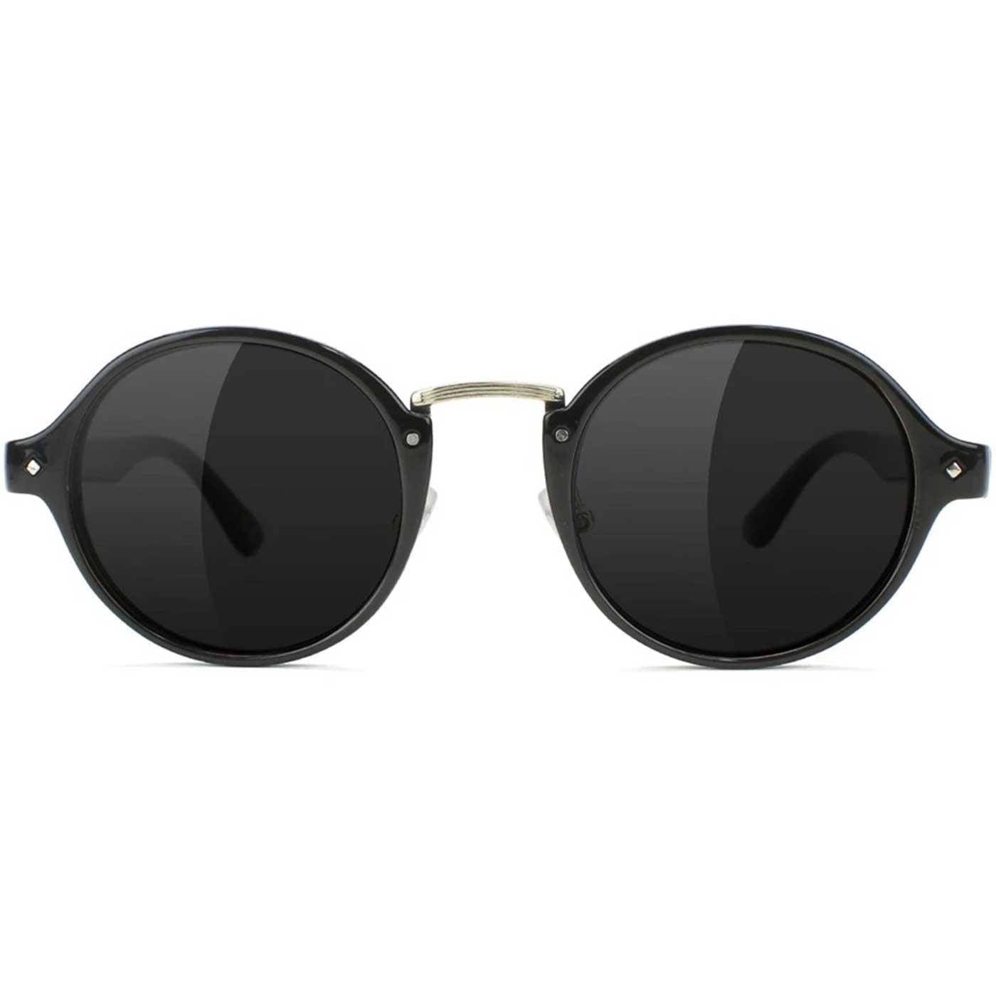 Monture noire avec accents dorés et verres noirs