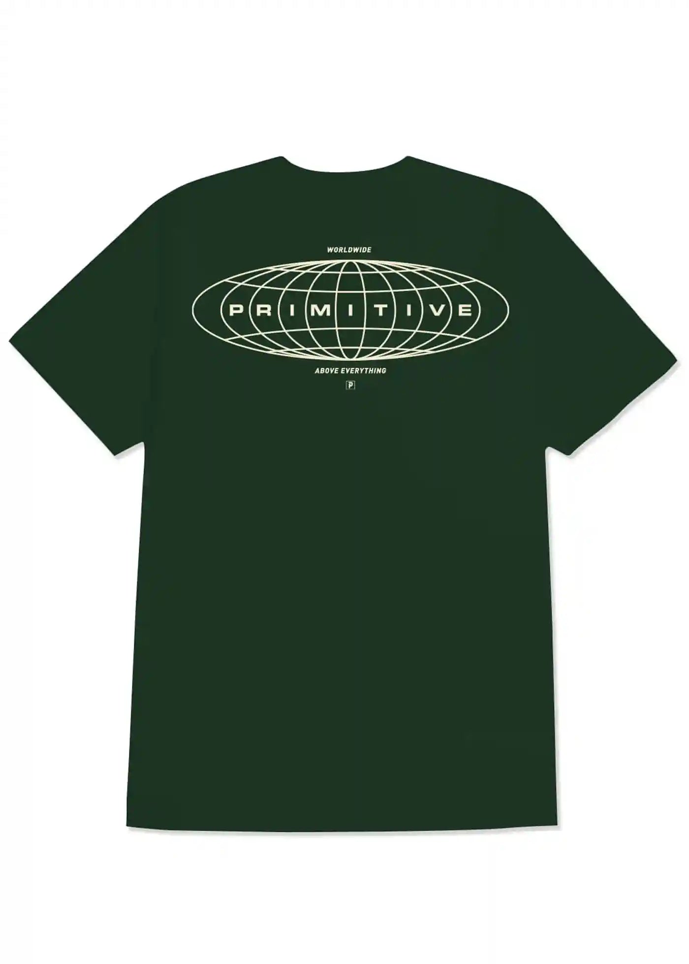 Logo imprimé en bloc primitif au-dessus de la poche poitrine gauche, grand imprimé cosmopolite avec globe au dos.