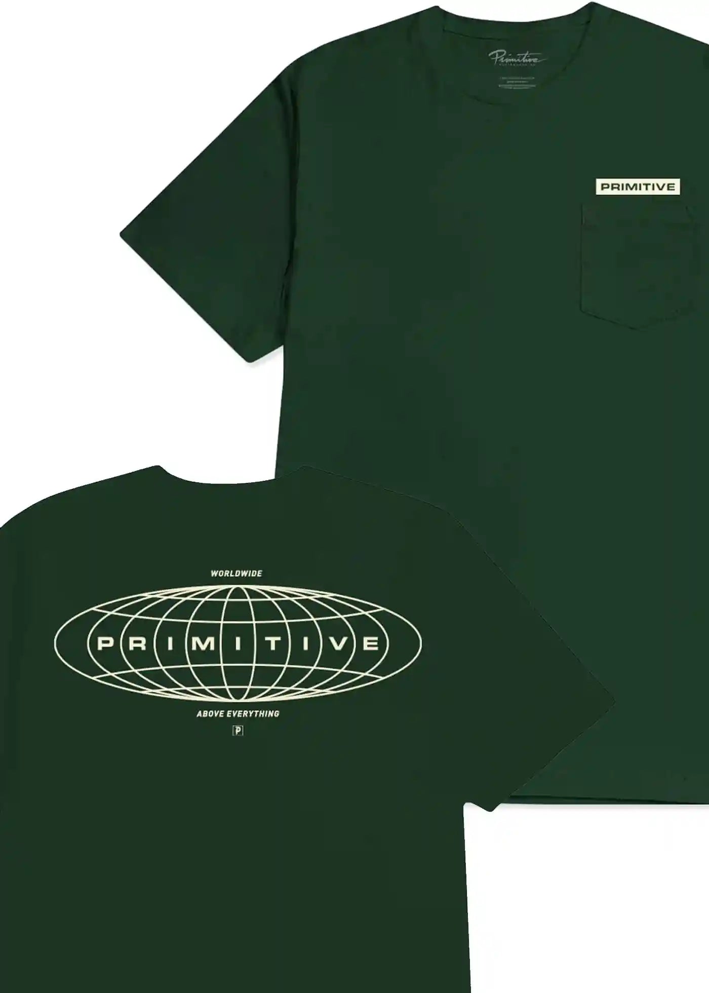 Le Cosmopolitan est un t-shirt à manches courtes Primitive Skateboards avec une poche poitrine.