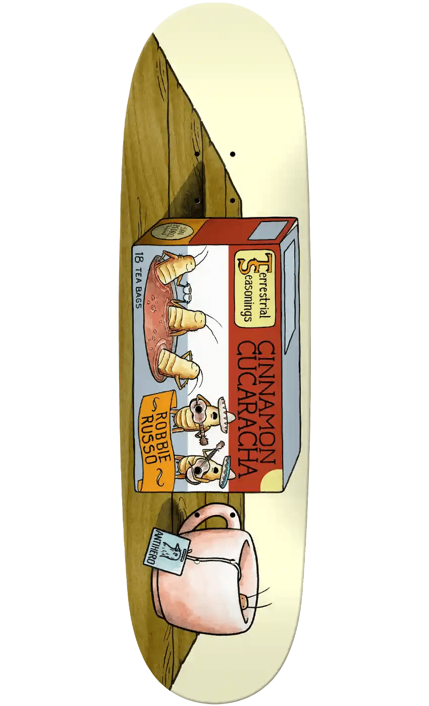 Das Terrestrial Seasonings ist ein Robbie Russo Pro Model Deck von Anti Hero Skateboards.