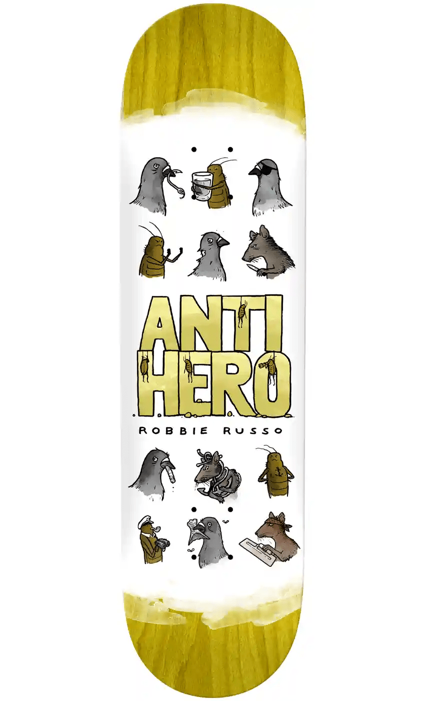 Das Usual Suspects ist ein Robbie Russo Pro Model Deck von Anti Hero Skateboards