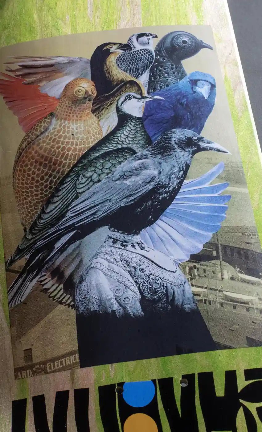 Die Holzfarben an der Oberseite, im ersten Bild rechts in Grün abgebildet, werden sortiert geliefert und können abweichen, werden oben aber dann ohnehin vom Griptape verdeckt.