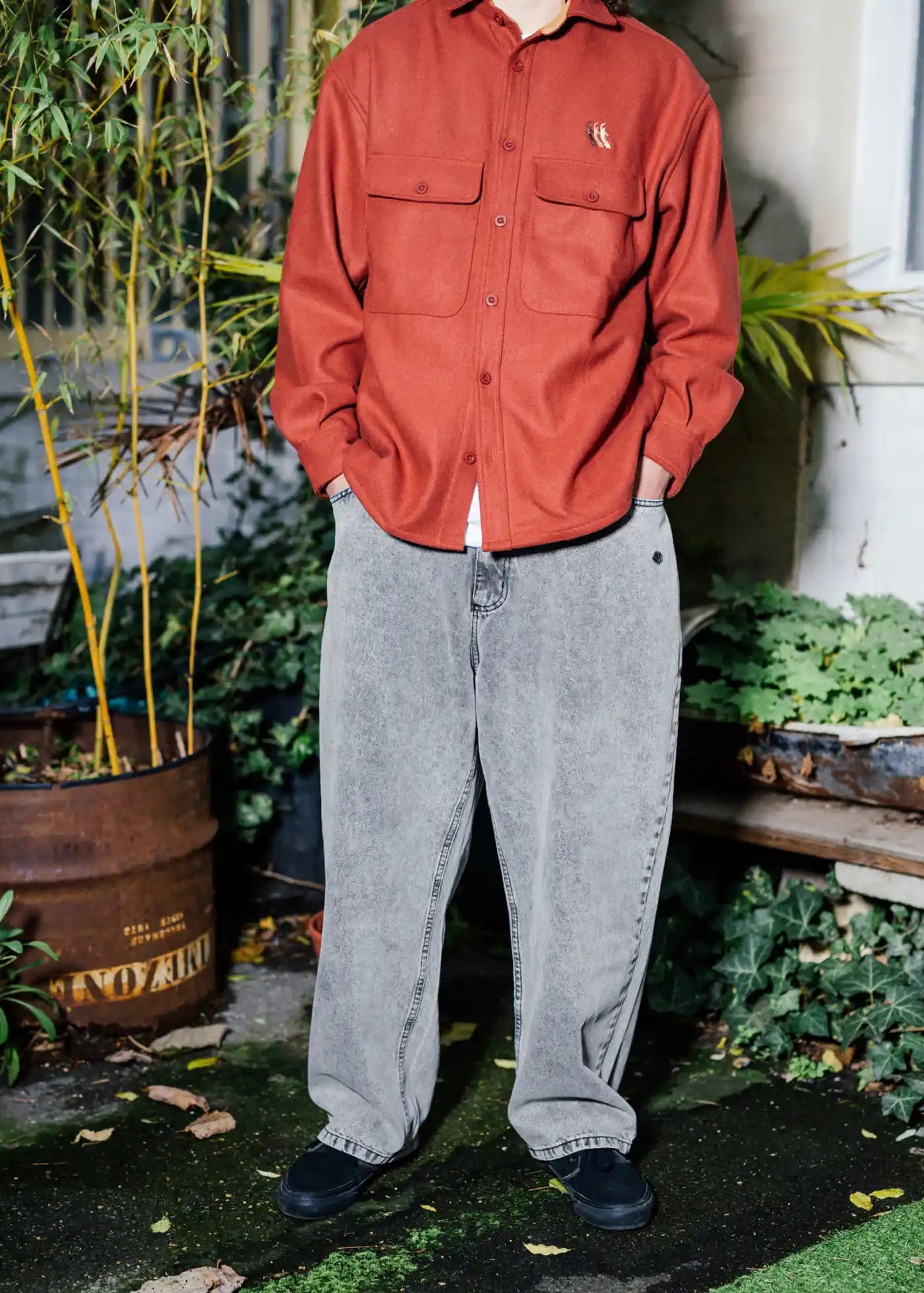Gesticktes Plant Logo an der rechten Tasche hinten.